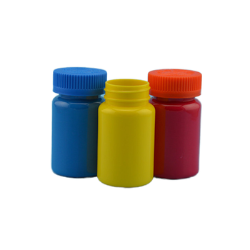 49-تعبئة حبوب منع الحمل من بلاستيك الحيوانات الأليفة للزجاجة المستديرة الملونة الشفافة مع غطاء لولبي وطباعة الشاشة
